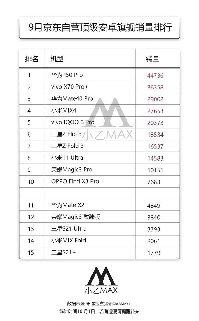最近还发现了一个有意思的现象,就是华为P50Pro这款仅支持4G还严重缺货的机型,竟然把一众备货充足、支持5G的安卓旗舰给超了,这就很尴尬。